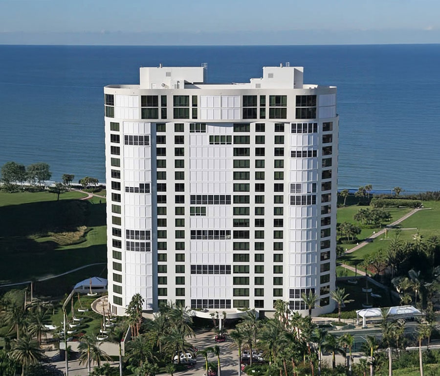 “The Garden” is an elegant beachfront condominium with 20 floors and 52 residences, each with its own private elevator lobby.